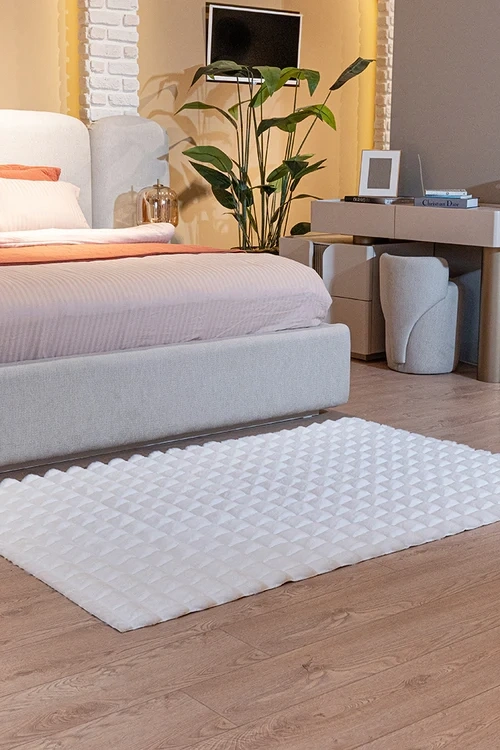 Apex Halı Diamante 7001 Beyaz Peluş Kaymaz Taban Dekoratif Halı