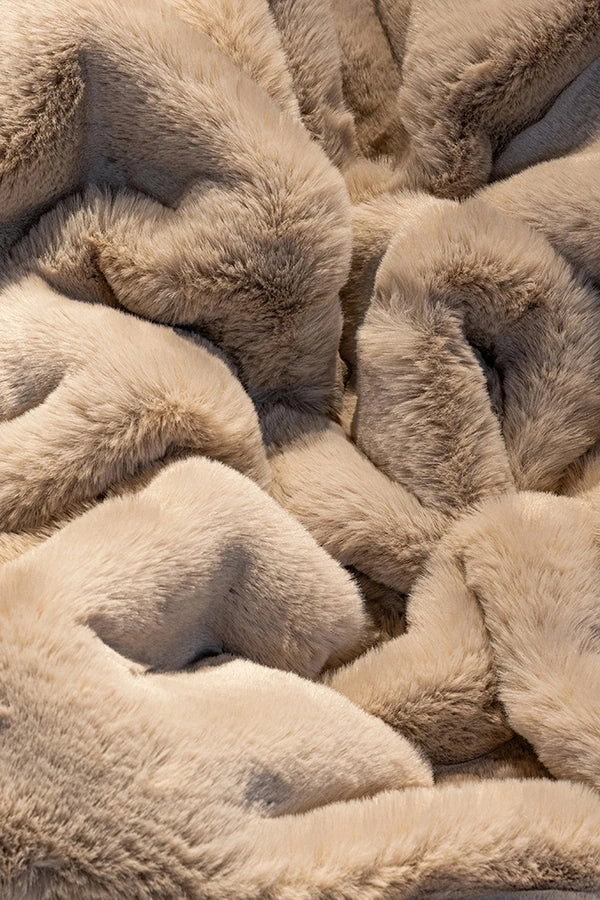 %100 polyester peluş – yoğun ve uzun havlı, yumuşak doku.