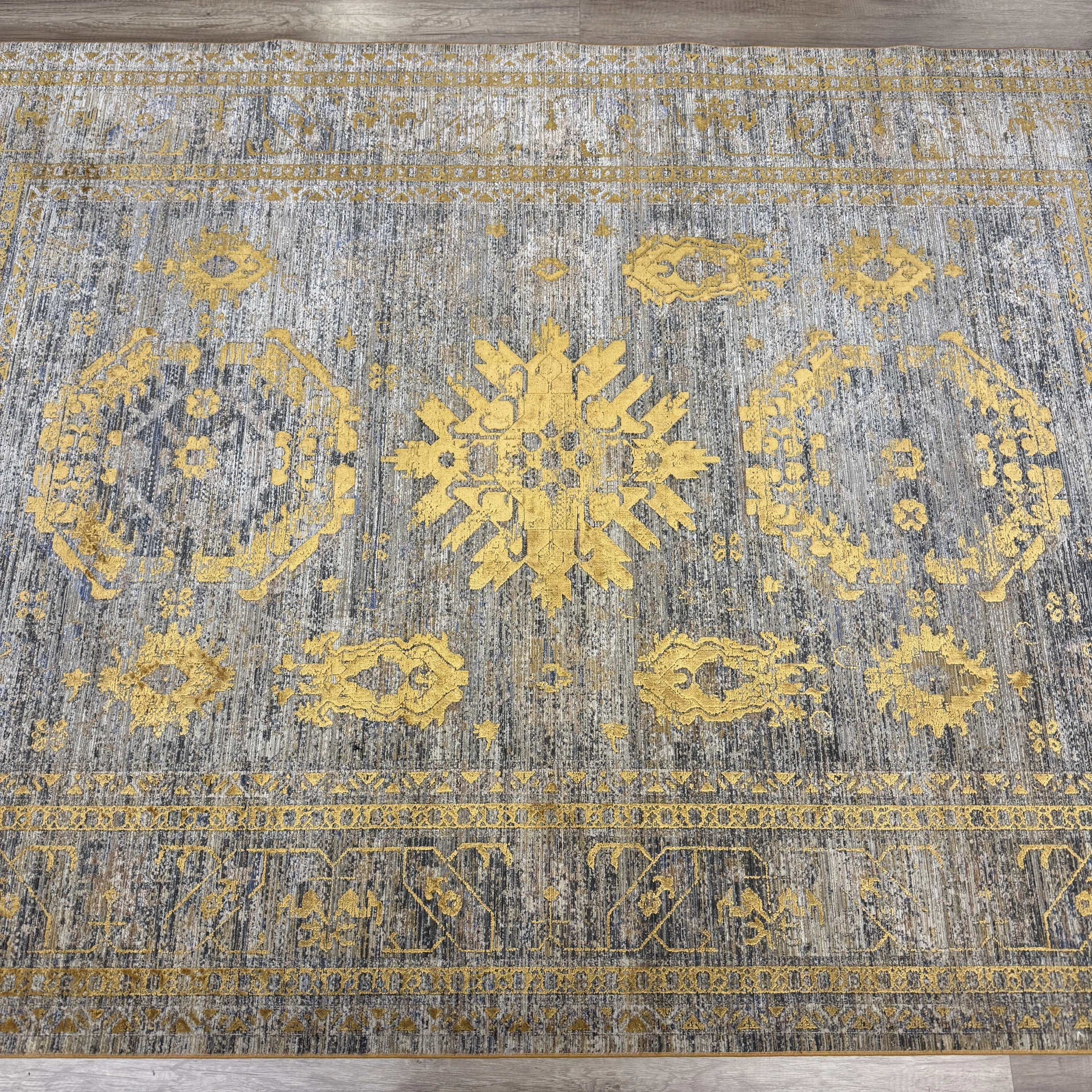 Modern dekorasyonu tamamlayan şık detaylara sahip yüksek–alçak dokulu modern salon halısı, polyester ve viskon iplik karışımıyla üretilerek hem dayanıklılığı hem de ipeksi dokuyu bir arada sunar. Sık dokuma yapısı sayesinde uzun ömürlü kullanım sağlarken, hav vermeyen özel üretim teknolojisi ile günlük kullanım için idealdir.