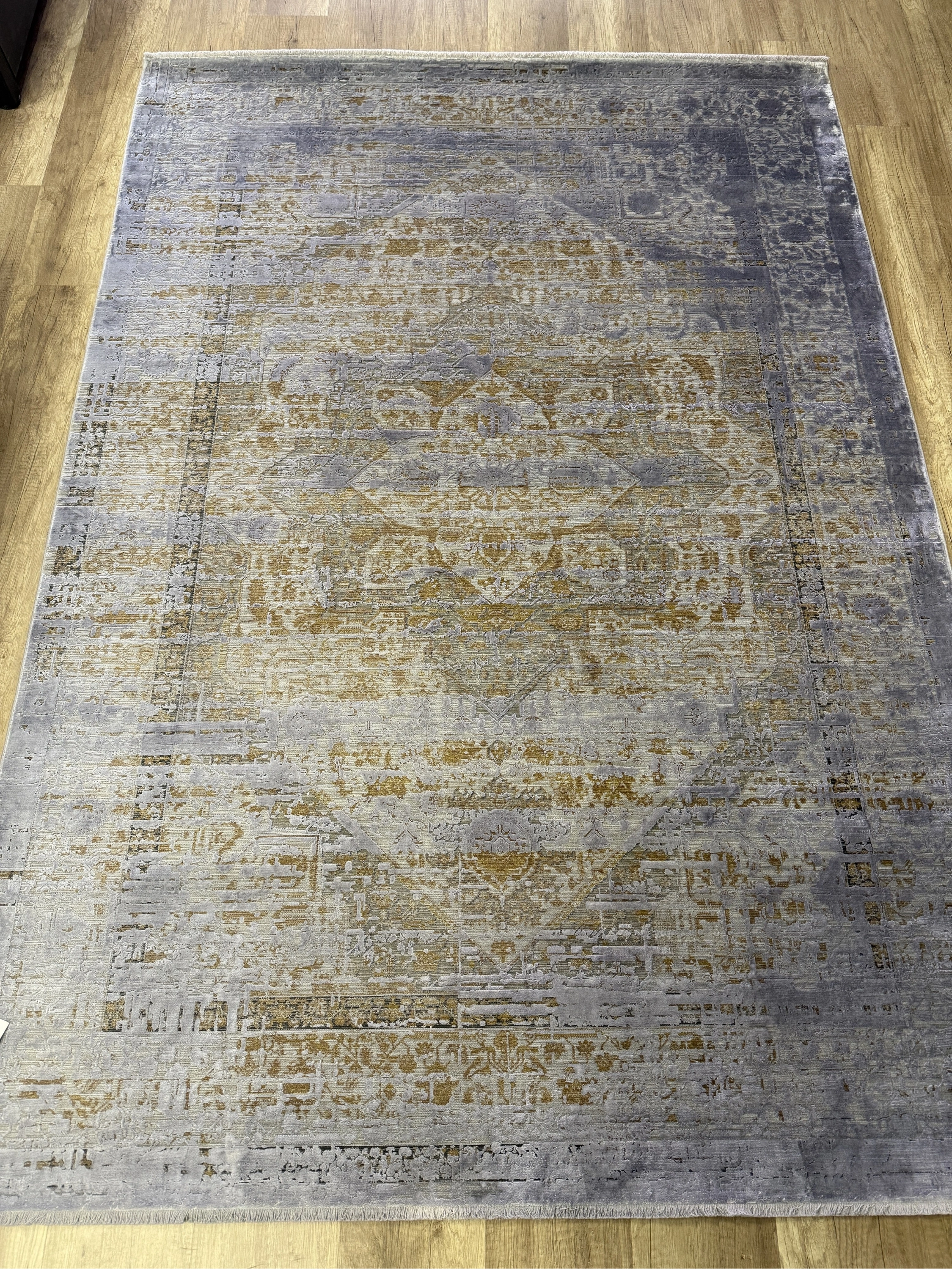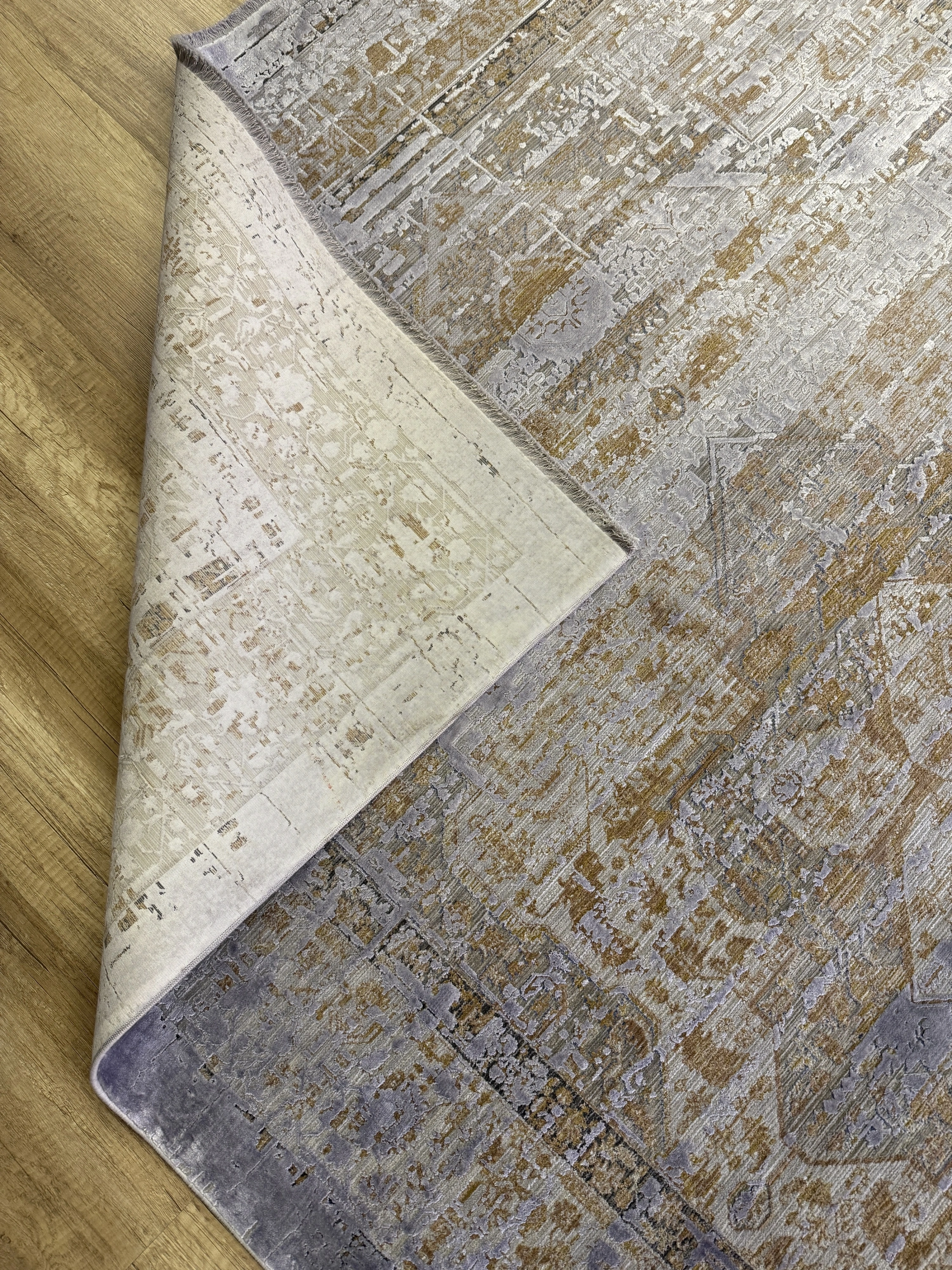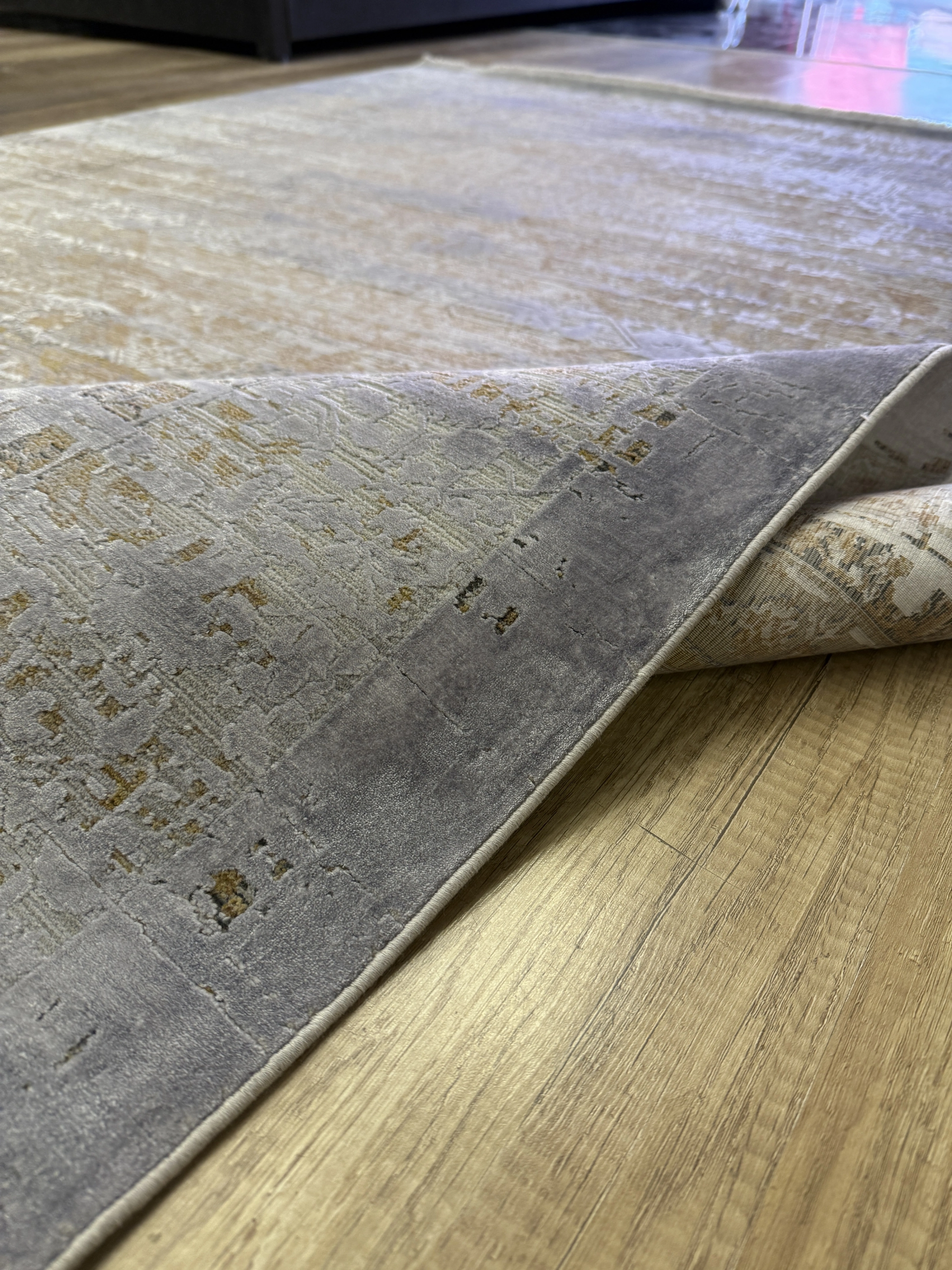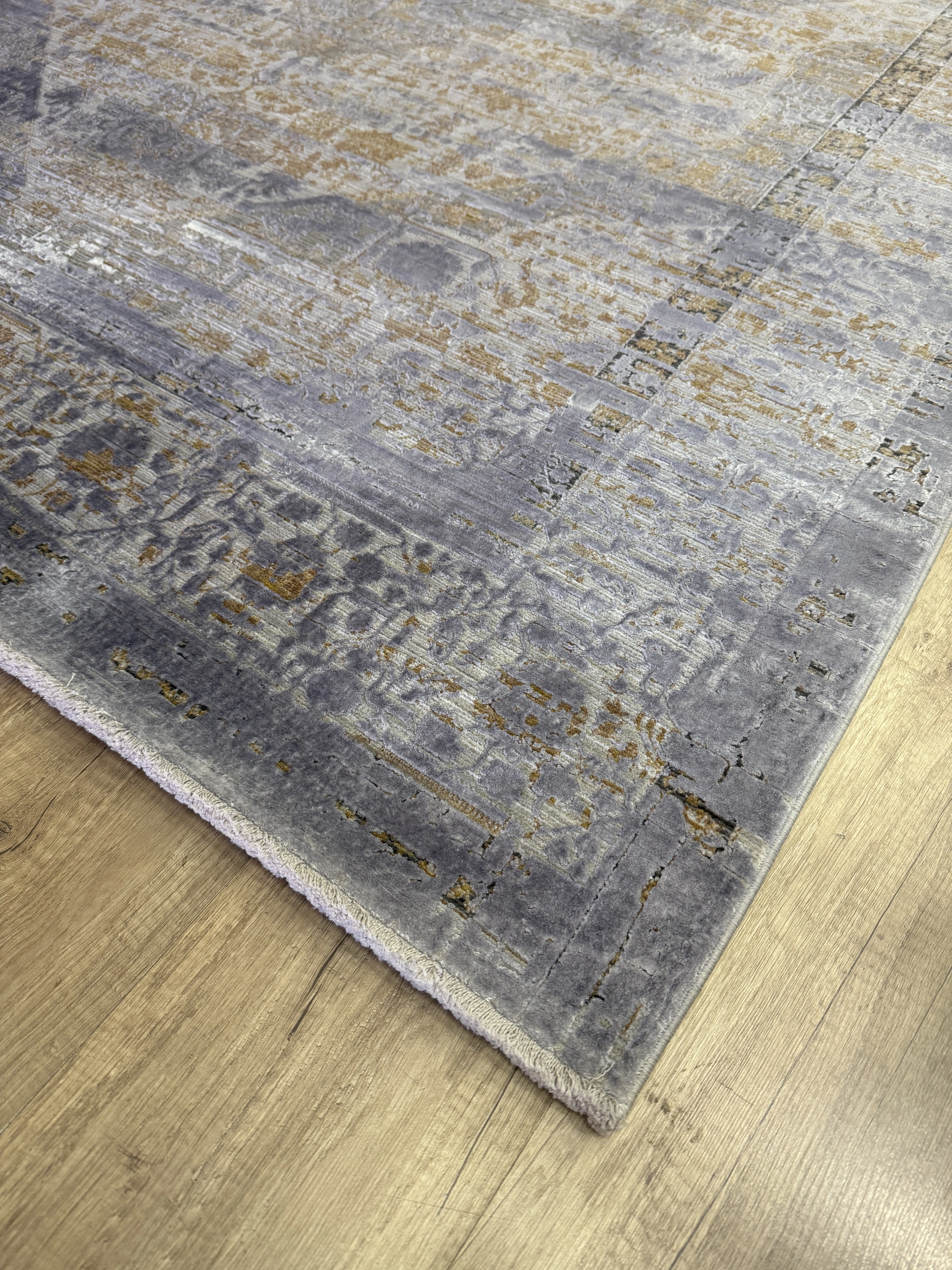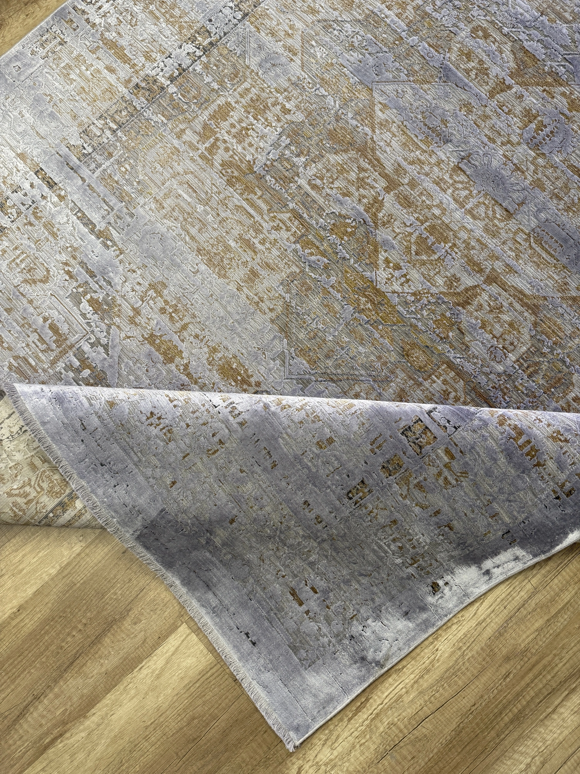 Modern dekorasyonu tamamlayan şık detaylara sahip yüksek–alçak dokulu modern salon halısı, polyester ve viskon iplik karışımıyla üretilerek hem dayanıklılığı hem de ipeksi dokuyu bir arada sunar. Sık dokuma yapısı sayesinde uzun ömürlü kullanım sağlarken, hav vermeyen özel üretim teknolojisi ile günlük kullanım için idealdir.
