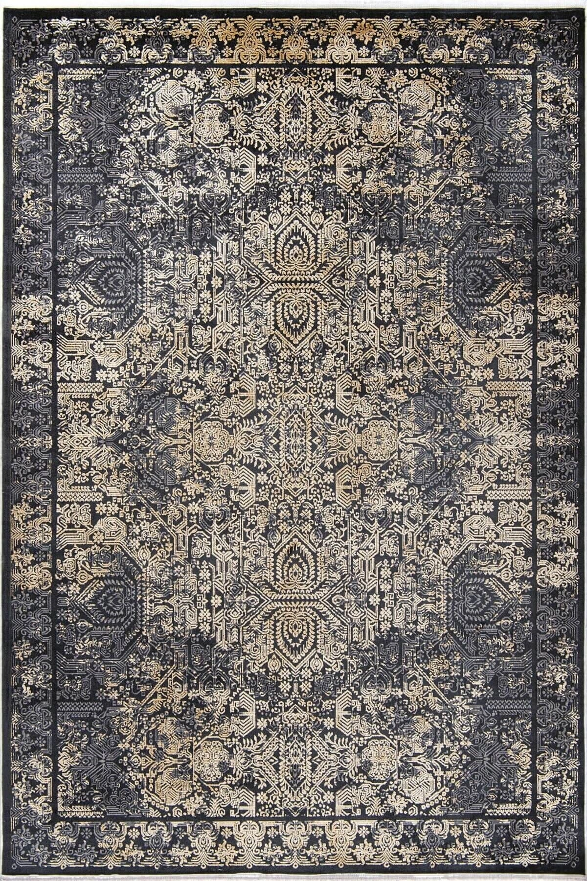 Hoom Rugs Natural 1707 Siyah Sarı Klasik Salon Halısı