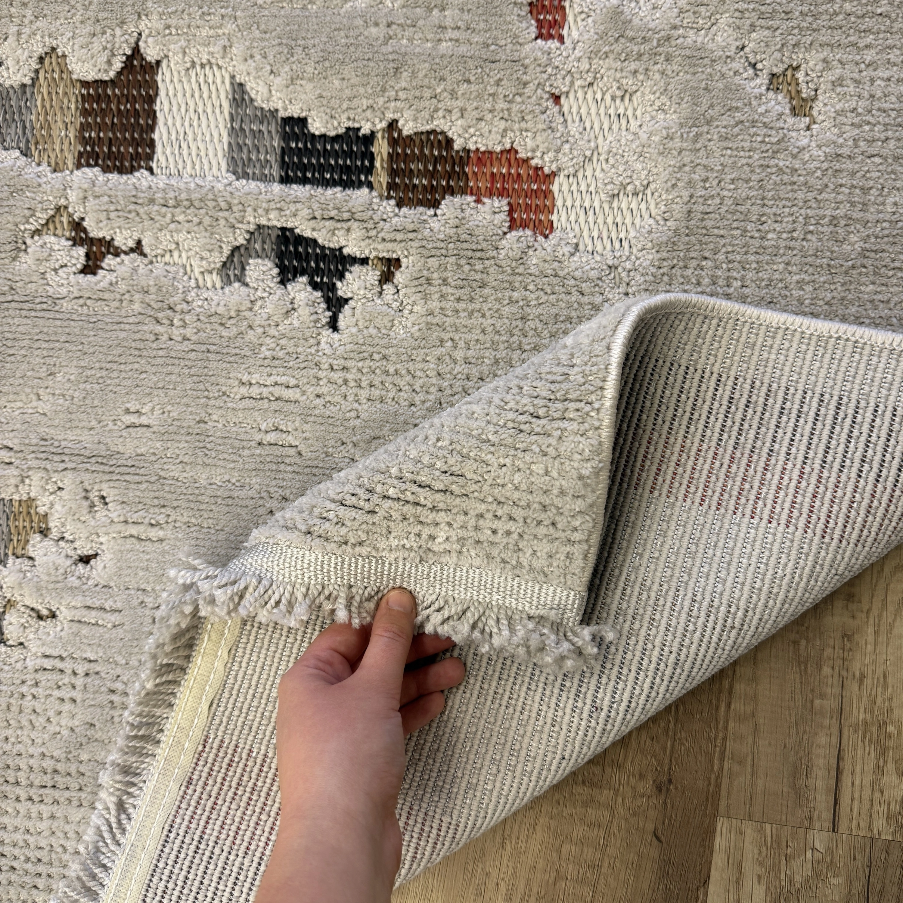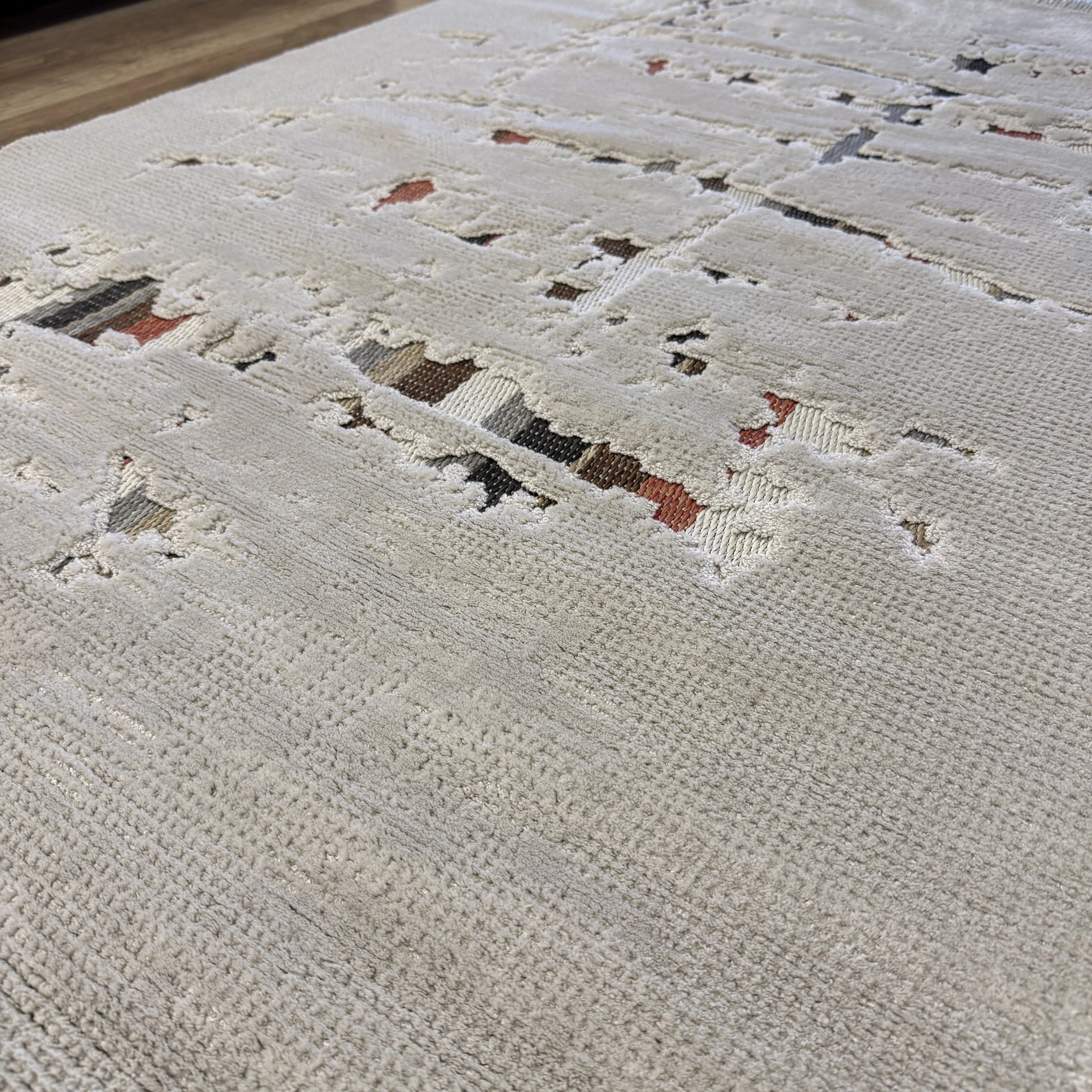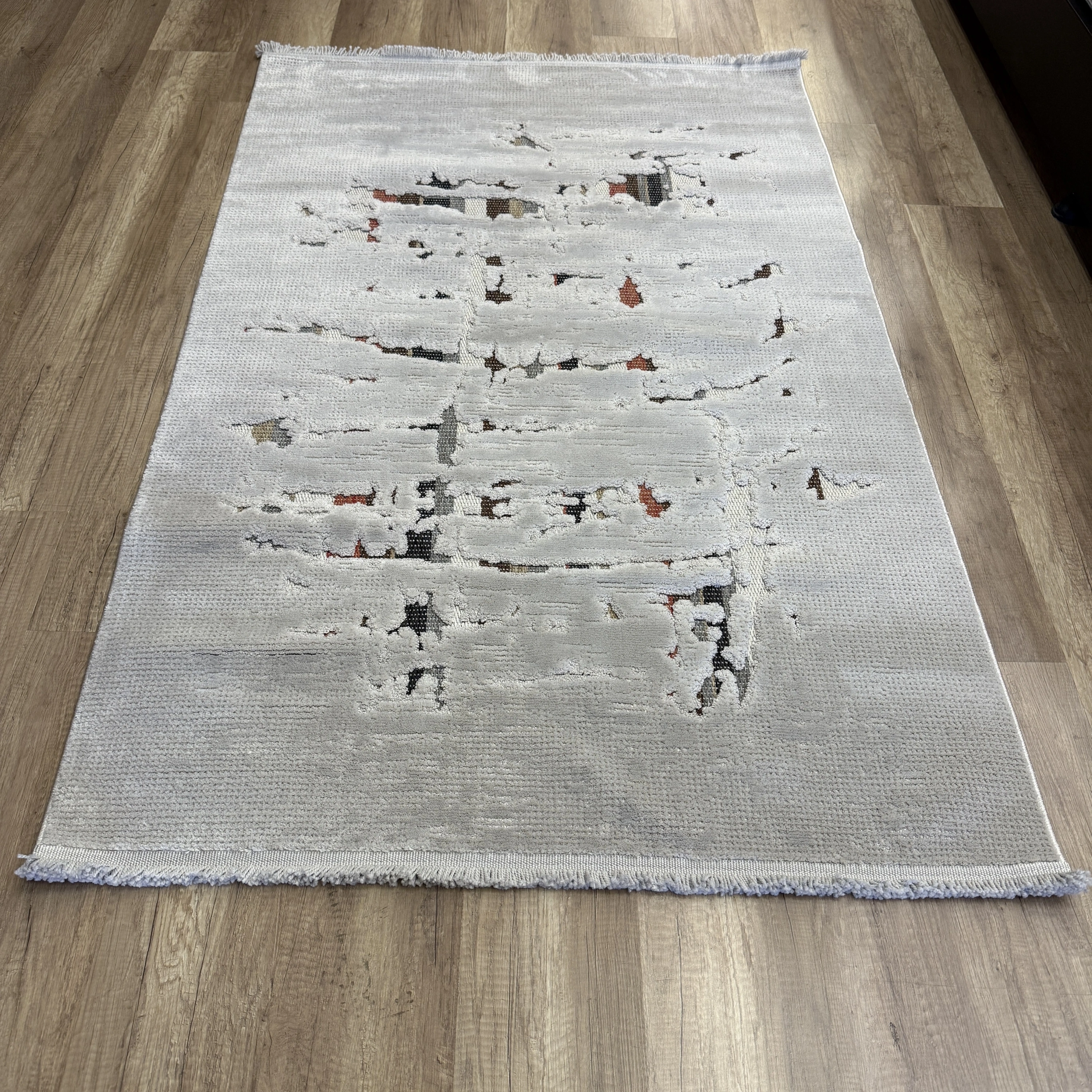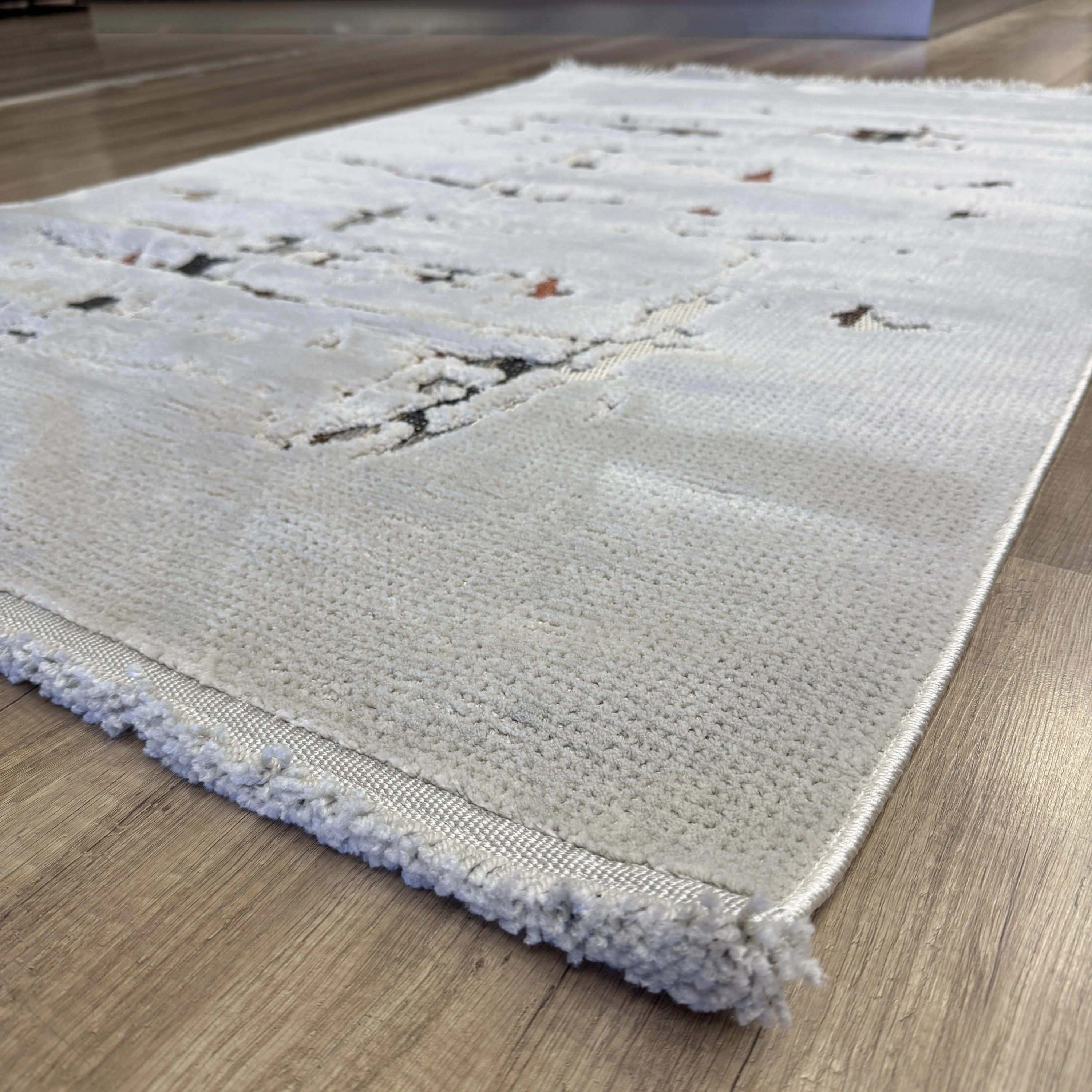 Şıklığı ve rahatlığı bir arada sunan bu modern halı modeli, yaşam alanlarınıza zarif bir dokunuş katmak için ideal bir seçimdir.