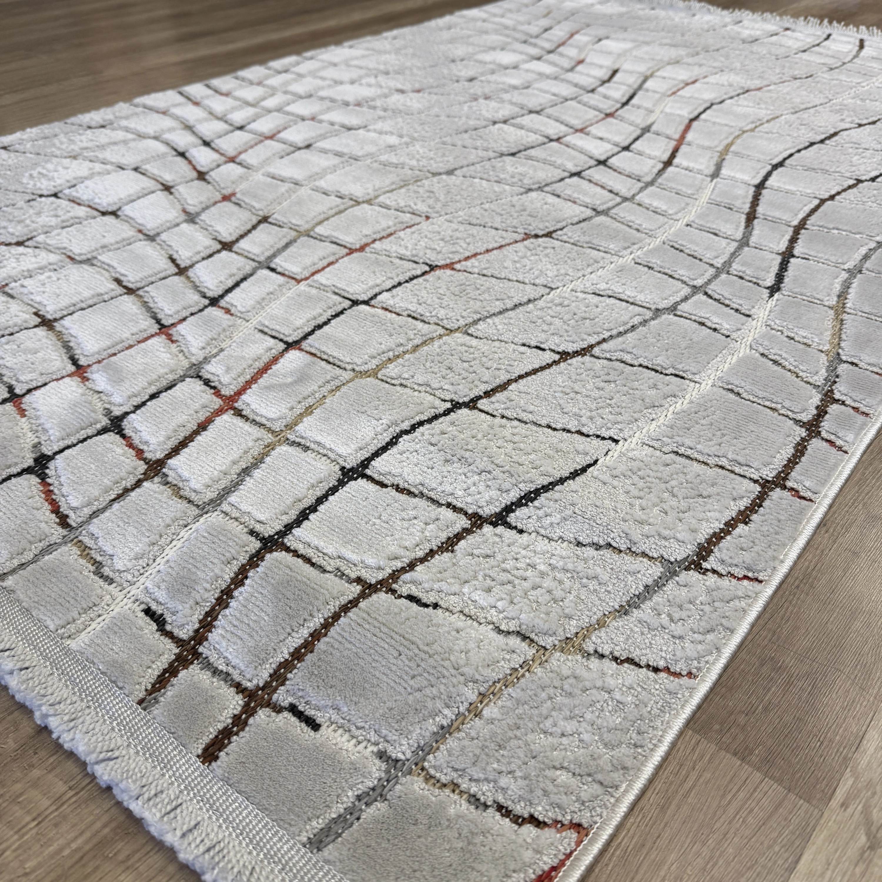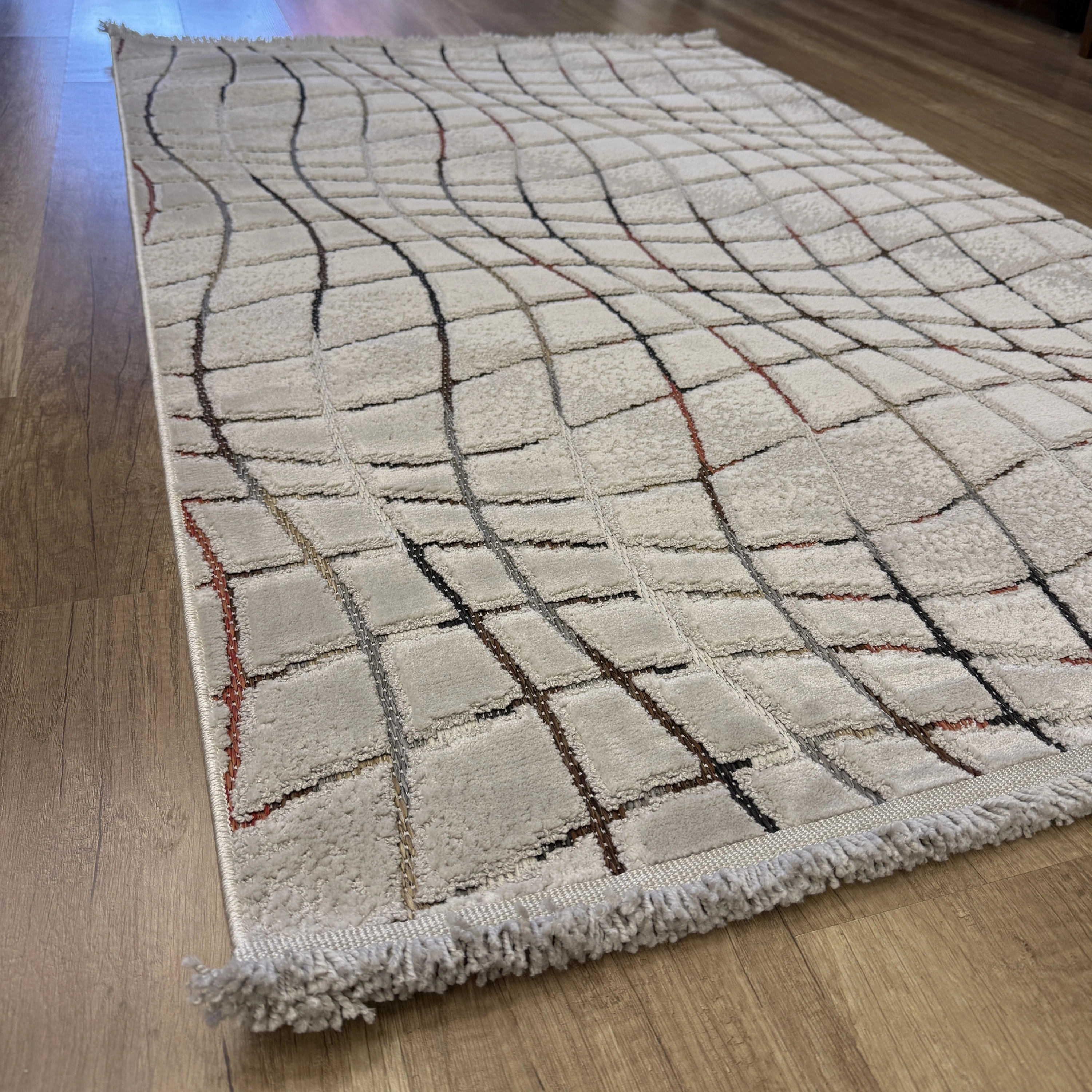 Şıklığı ve rahatlığı bir arada sunan bu modern halı modeli, yaşam alanlarınıza zarif bir dokunuş katmak için ideal bir seçimdir.